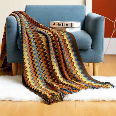 ✔️ שמיכת זיגזג בוהמיינית בסריג איכותי